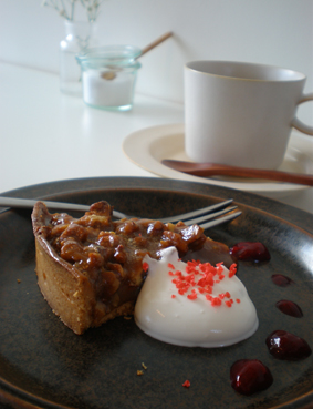 くるみとキャラメルのタルト、グアテマラのコーヒー。