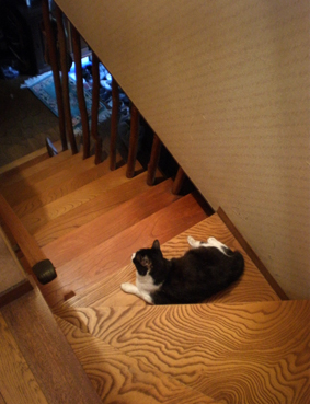 どうも朝は階段にある窓からの風が気持ちがいいらしい。