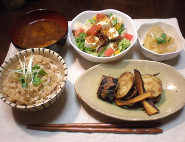 ●豆腐とワサビ菜のサラダ 手作りタマネギドレッシング