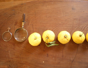 先客の小さな男の子が遊んでいた「ゆず」と「むしめがね」。