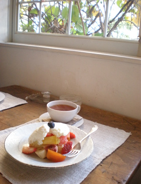 フルーツショートケーキと紅茶。