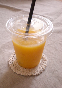 さらに氷、そのフルーツに合いそうなジュース(果汁100%)も加える。