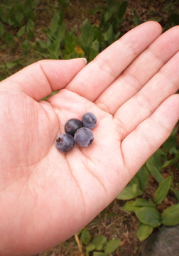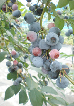 ブルーベリーってぶどうのように鈴なりに実をつけることを知りました。