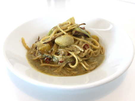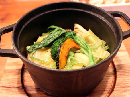 メインはSTAUBで煮込まれた豚肩ロースと春キャベツのココット。