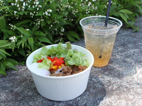 お昼ご飯は「ぞうめし屋」の今回のイベント限定、中華風肉みそ温玉ごはんと
