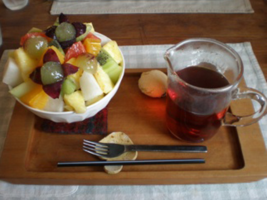 私はたっぷりの旬の果物が乗った「フルーツ紅茶」を頂きました。