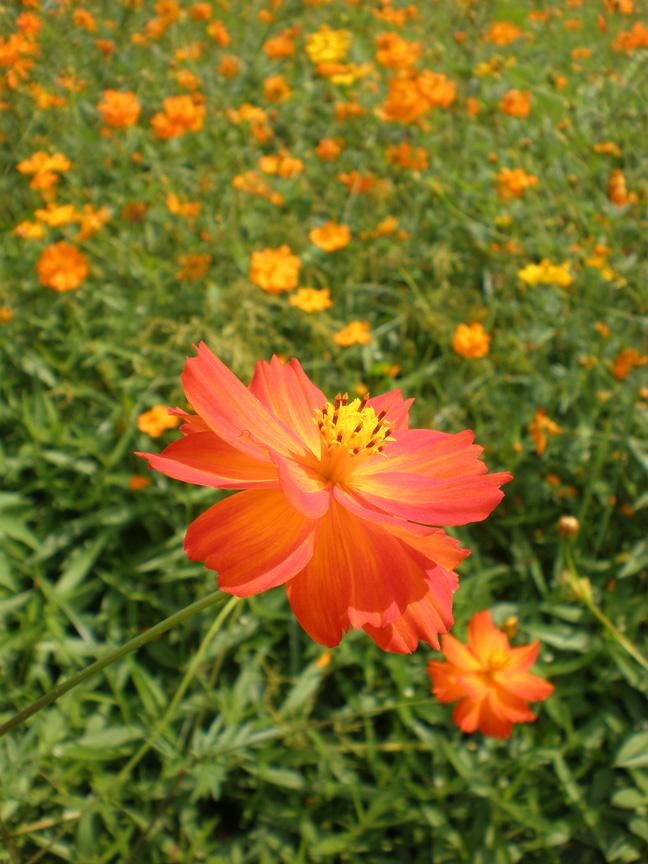 微妙に異なる色合いのコスモスがきれい。