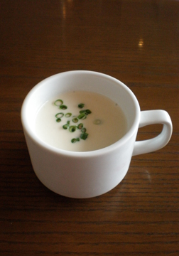 冷たいビシソワーズとメインはお肉を煮込んだもの。