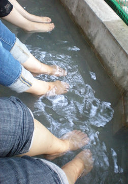 「河原展望台」では足湯を堪能。