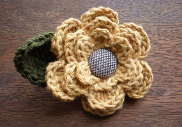 真ん中にはツイード柄のくるみボタンをつけて葉っぱもついてます。