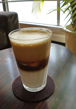 きれいに二層に分かれたアイスカフェラテ。