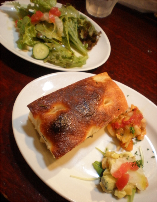 サラダに前菜、フォカッチャ。