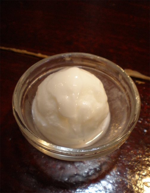 メインのパスタとデザートのレモンのシャーベット。