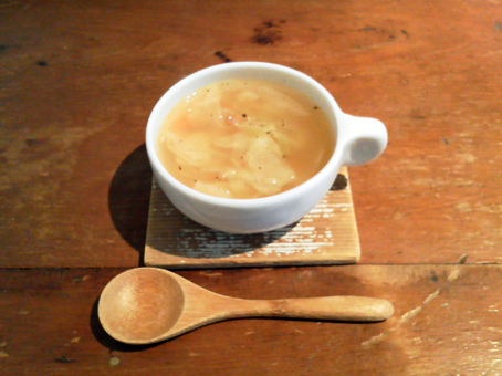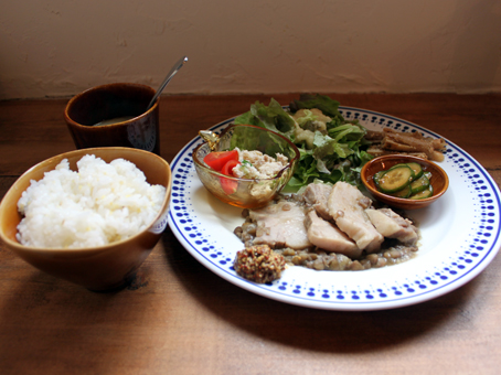 この日のランチはレンズ豆と塩豚の煮込み、たたきごぼう、