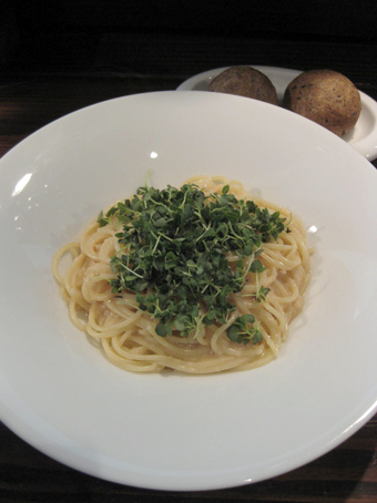 たらこクリームのパスタとごまたっぷりのパン。