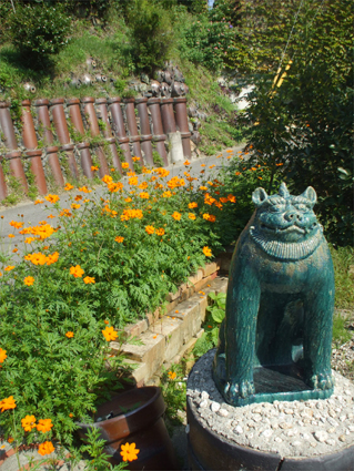 シーサー? コスモスの季節。