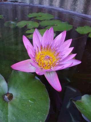 常滑焼きの龜に蓮の花。
