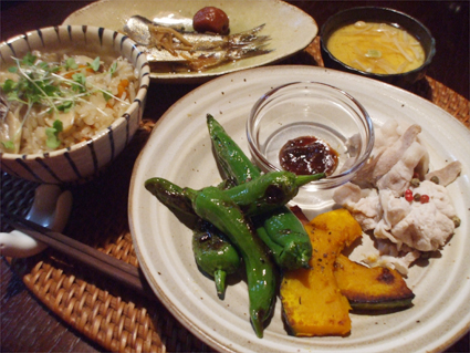 ●野菜のグリルと豚しゃぶの紫蘇みそ添え