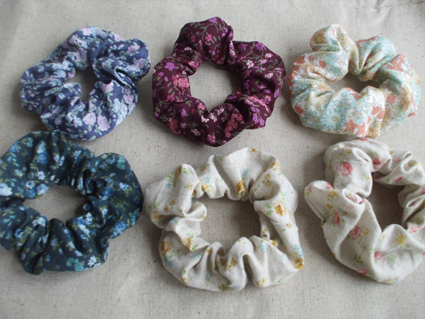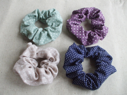 起毛素材の布やハーフリネンを使ったシュシュができました。