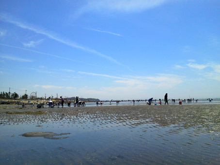セントレアで発着する飛行機を見ながらの青空の下での潮干狩り。