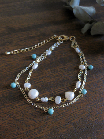 ちょうちょのブローチに、夏らしい淡水パールを使用したブレスレットです。
