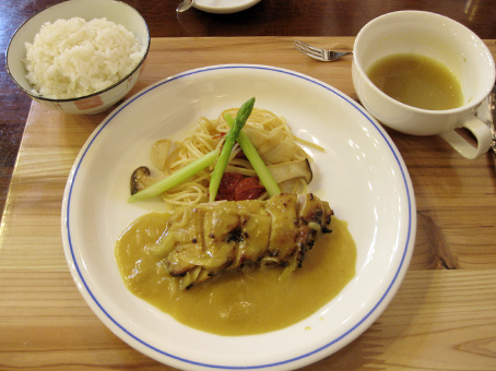 皮をパリパリに焼いたスズキ(が隠れてますが)と