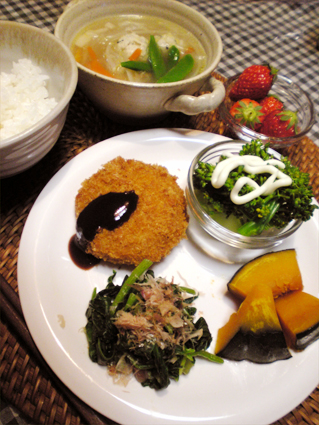 小麦粉→卵→パン粉の順に衣を付けて油で揚げる。