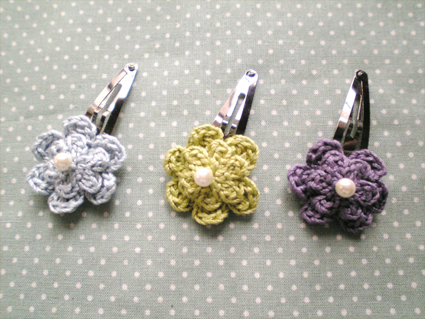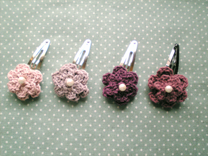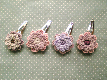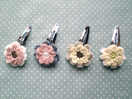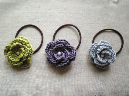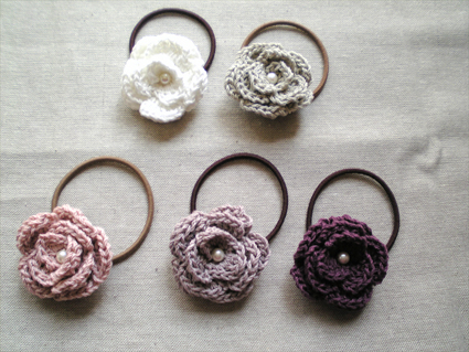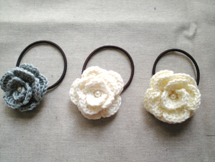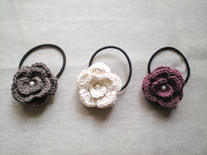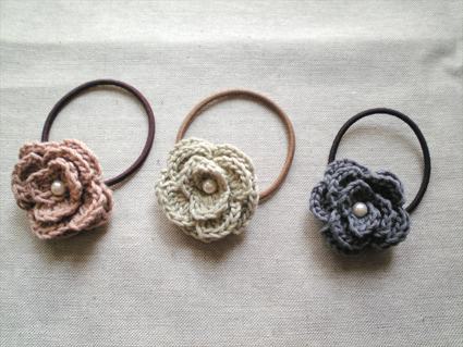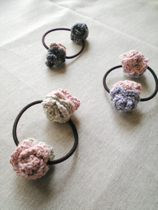 それぞれ質感の異なる糸で編んだヘアゴムです。