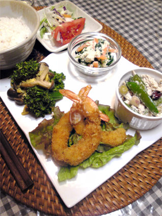 ・海老の殻と背わたを取り、塩、コショウをしておく。