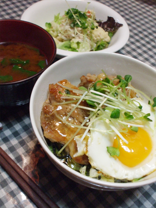 目玉焼きを横に添えてかいわれ大根ののせる。