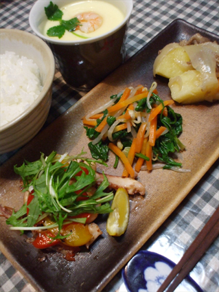 そこへ小えびとみつばも加えて炒め、塩、コショウをし、