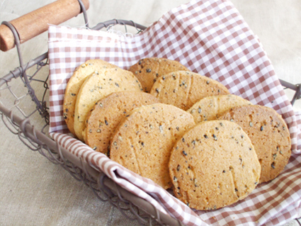 黒ごま、全粒粉、きび砂糖を使った、体に優しいクッキー。