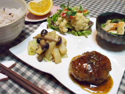 ●ポテトとしめじとキャベツのガーリックバター炒め