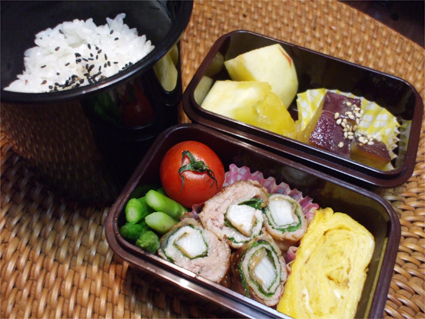 お弁当の肉巻きに長芋を入れてみた。