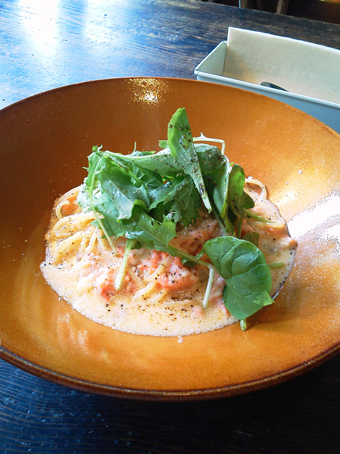 パスタはフレッシュトマトとサーモンのクリームパスタ。