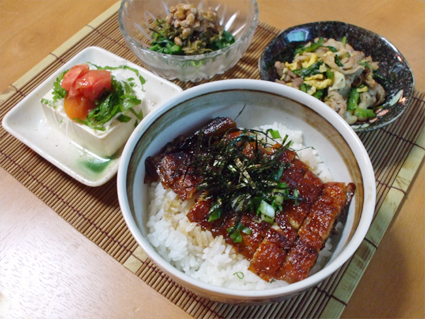 ねぎ、わさび、のりをのせてひつまぶし風に。