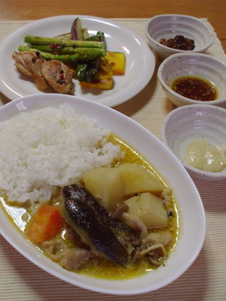 具材はじゃがいも、にんじん、しめじ、なす、鶏肉