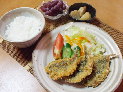 ・いわしの頭と内臓を取り、開いて骨をとる。