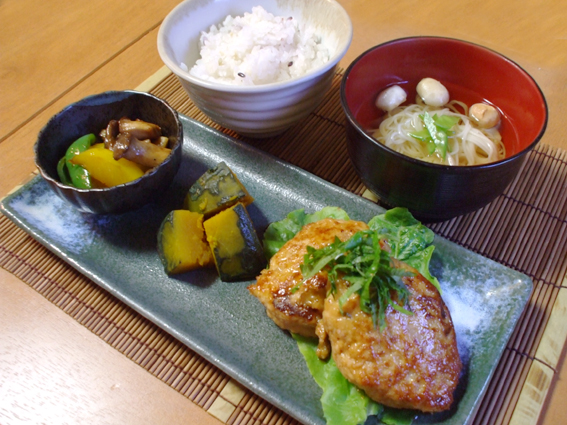 ・適当に切ったカボチャを軽く空煎りし、砂糖、しょうゆを加える。