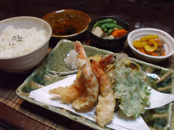 ・てんぷらのタネは海老、さつまいも、なす、大葉、カボチャ。