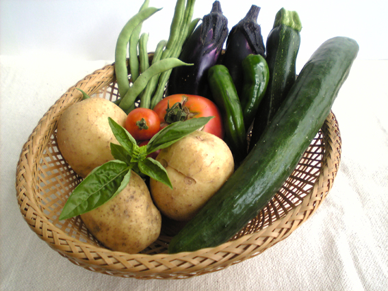 いんげん、茄子、万願寺とうがらし、ズッキーニ、きゅうり。