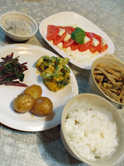 ・新じゃがは皮をつけたまま洗って素揚げ。そのあとは甘辛く煮る。