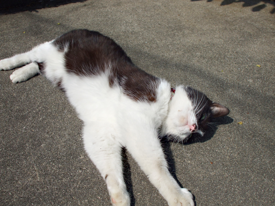 今日のように天気のよい日は、車庫の上で日なたぼっこがかかせないのだ。