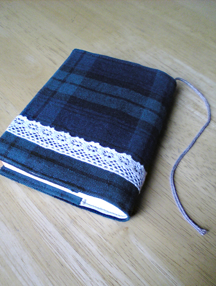 リネンのブラックウォッチにレースをつけたシンプルなもの。